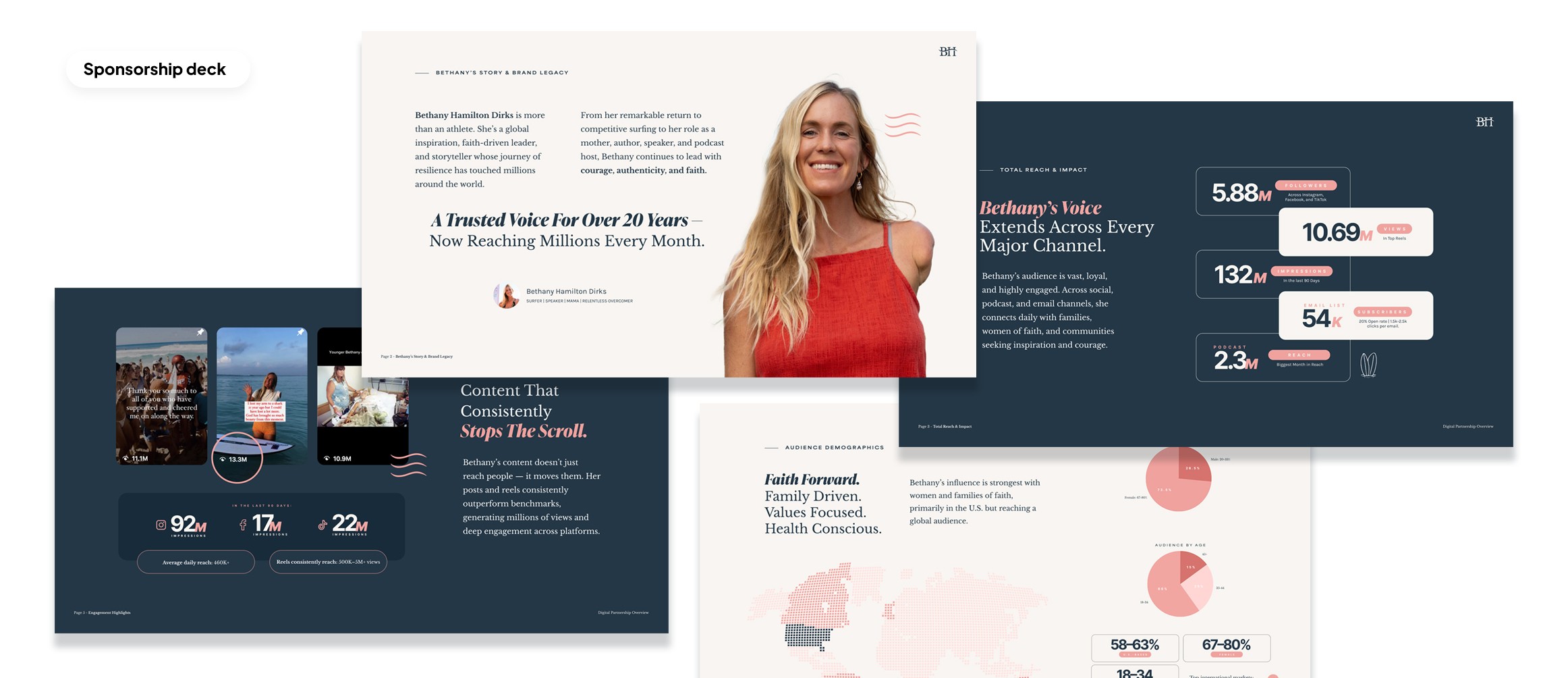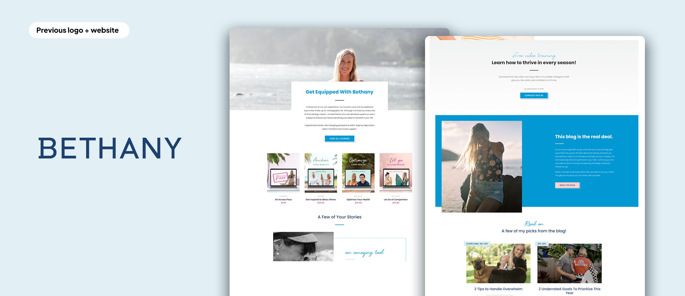 Bethany’s brand already had trust, recognition, and a powerful story. One of the biggest shifts was moving the visual narrative away from a more youthful, playful feel and into something more grounded, expansive, and emotionally mature.