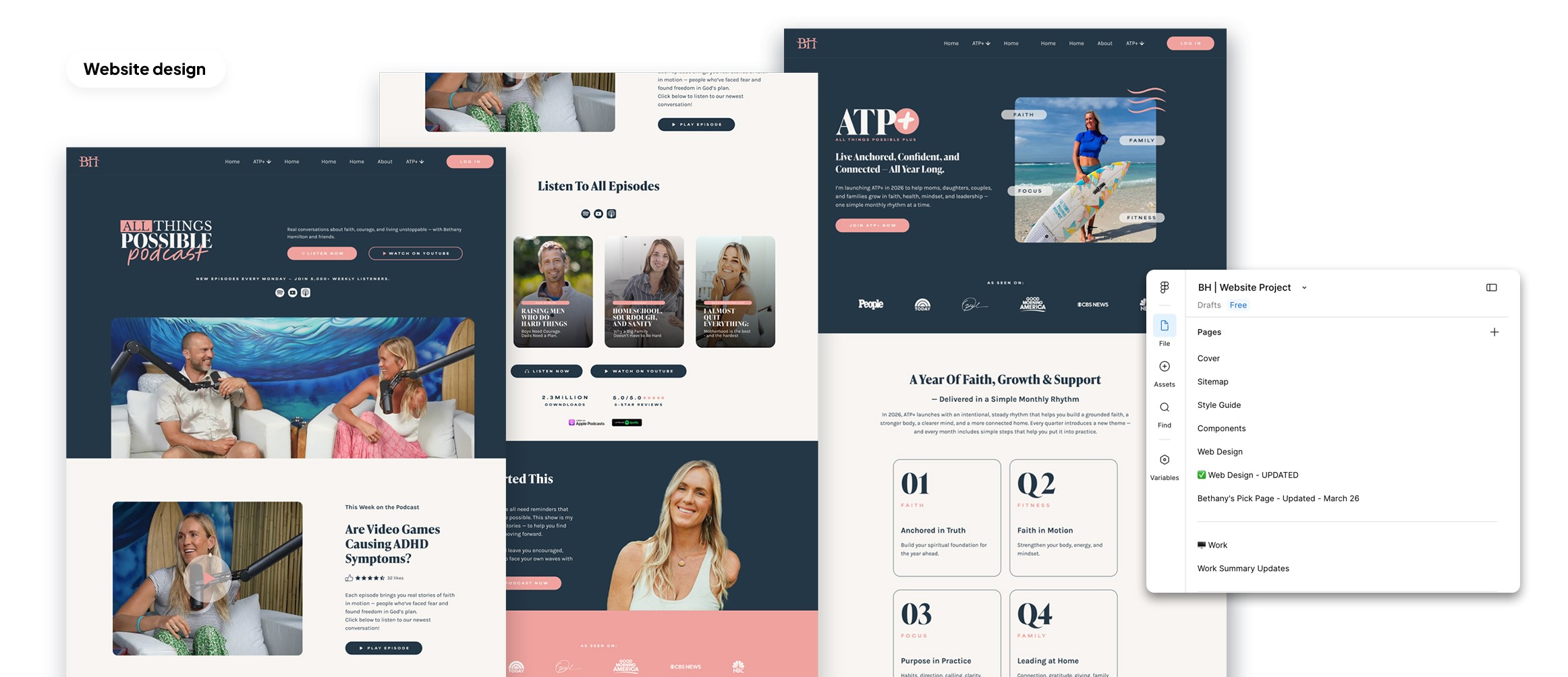 I wanted the identity and website to hold two truths at once: Bethany is strong, but she is also deeply reassuring. Her brand not only inspires through achievement. It also connects through calm, grace, faith, and encouragement. That is why this direction became less about performance and more about presence.