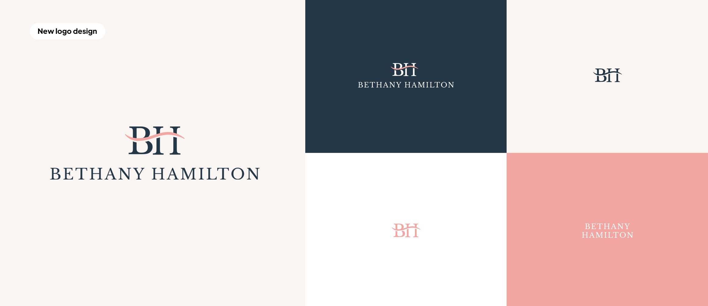 The wave symbol between her name was designed to act as more than a direct surf reference. I saw it as a connective form: something that could represent movement, continuity, and trust. Placing it between Bethany and Hamilton helped it function almost like a bridge inside her identity: between strength and softness, between her past and where the brand is growing, and between the public figure people already know and the more personal, faith-centered voice the brand is becoming.